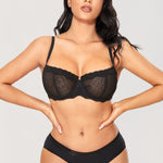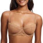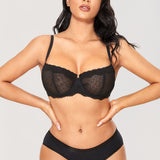 Women's Sexy Lace Underwire Balconette Bra Unlined Demi Sheer