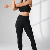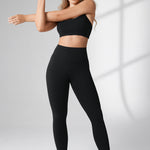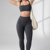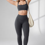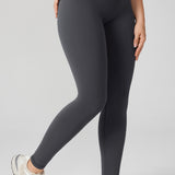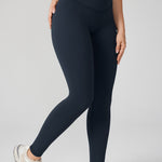 These leggings offer medium compression, buttery soft 4-way stretch fabric, and a high-waisted, double-lined waistband for tummy support. The "V" seams accentuate your waist and glutes, with a 28-inch inseam perfect for medium-intensity activities and a smooth, flattering fit.