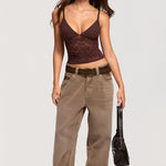 - Plunge V-neckline with floral lace adds a cute, stylish touch