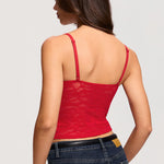This plunge V-neck lace camisole combines style and comfort for everyday wear. Soft, stretchy fabric and a delicate floral lace pattern create a flattering, versatile top that can be layered or worn solo.