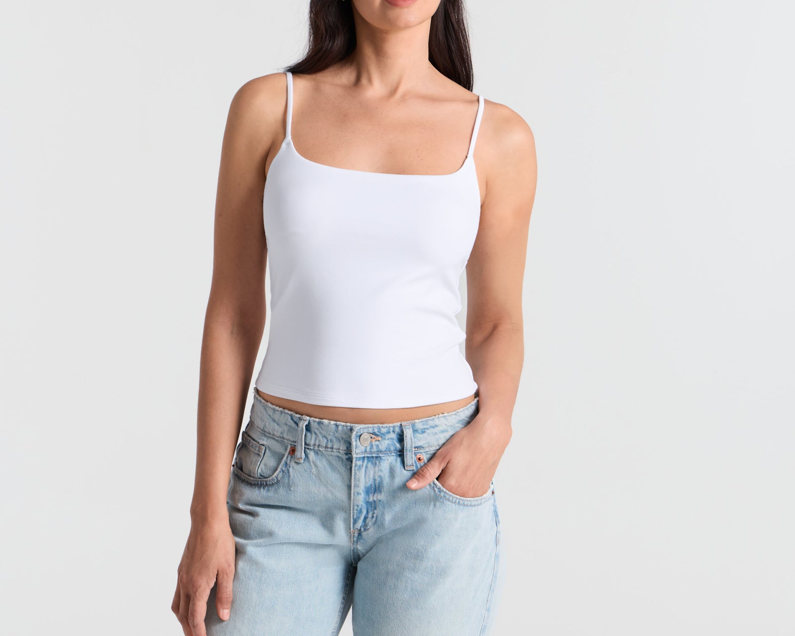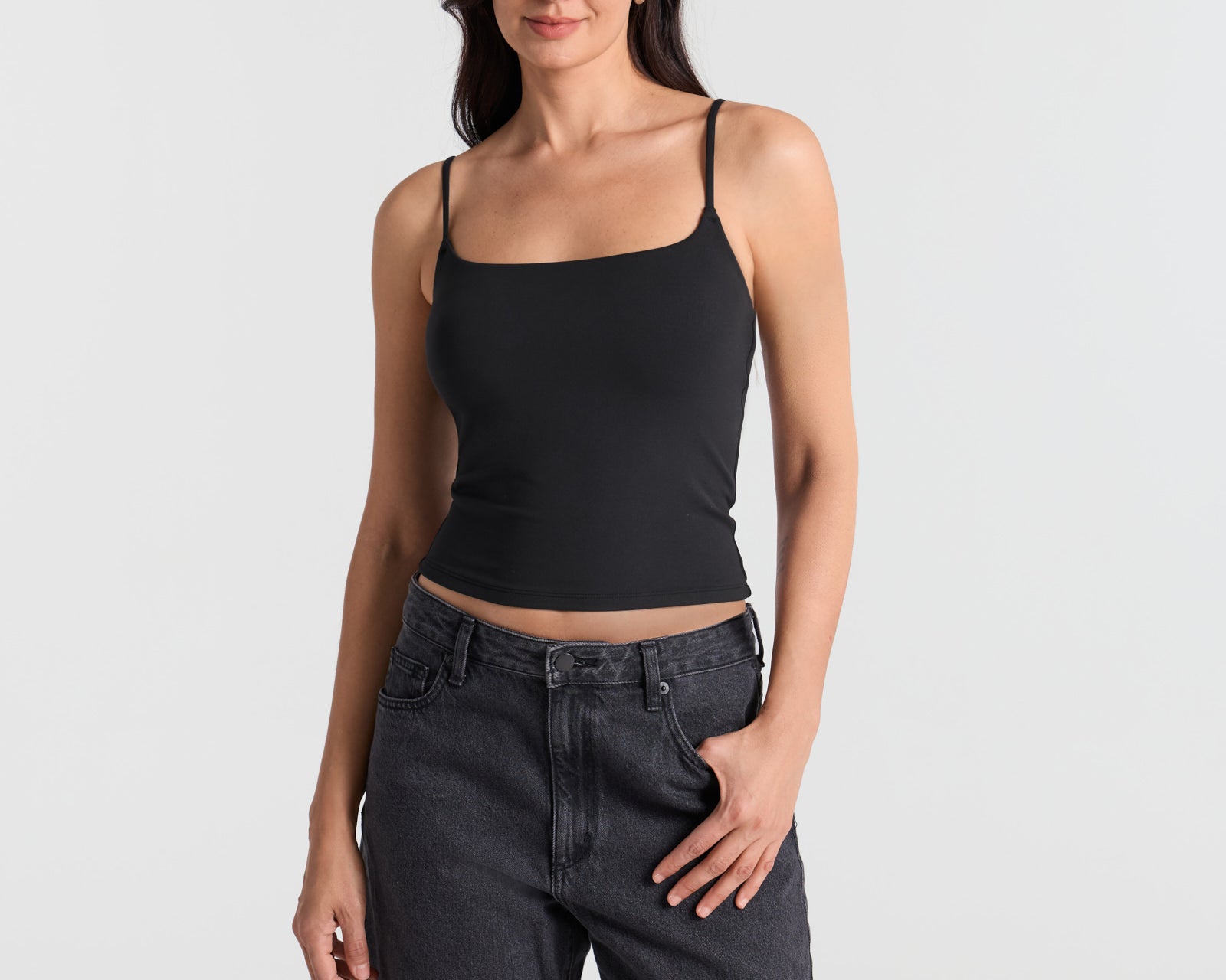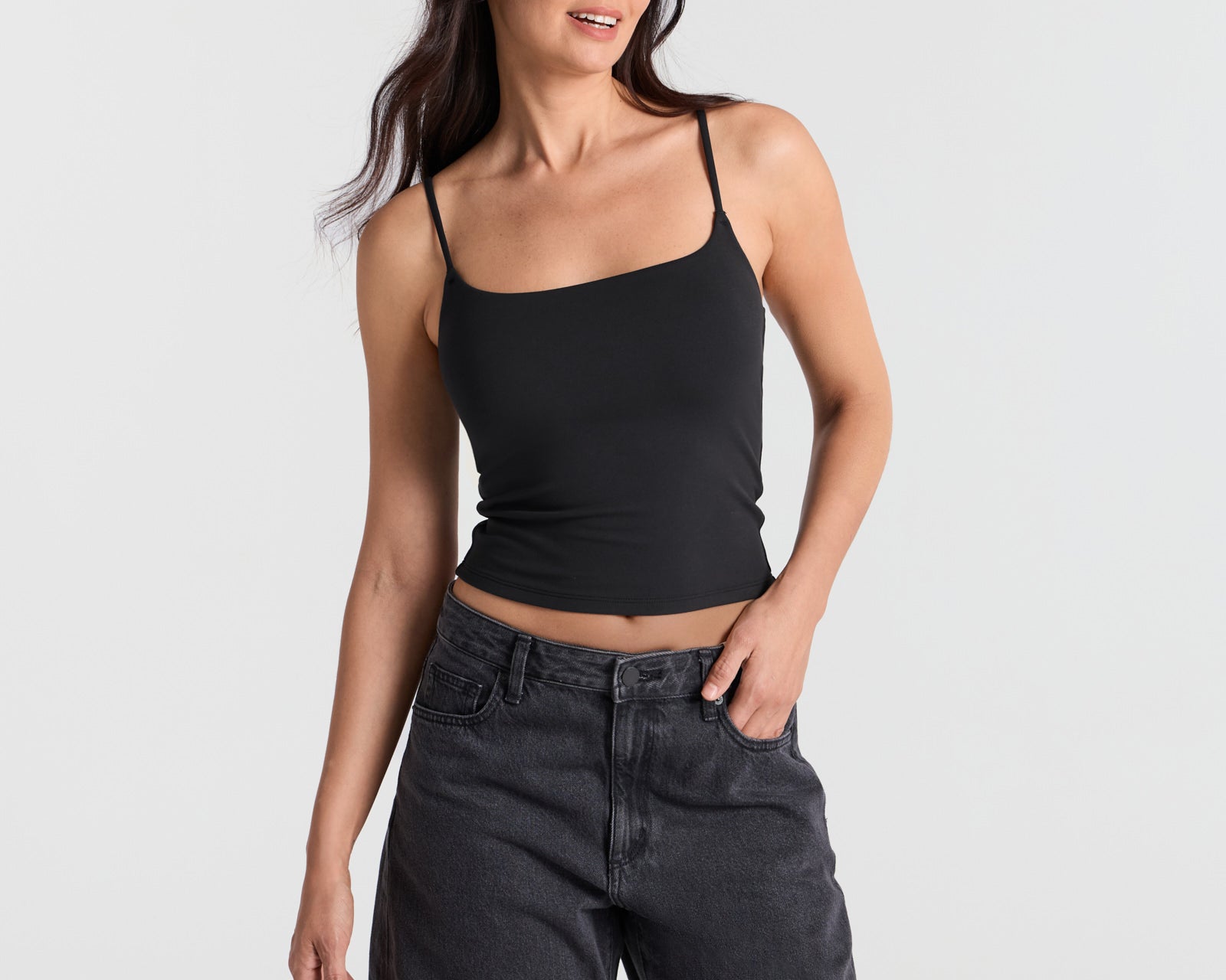 Spaghetti Straps Double Layer Crop Cami