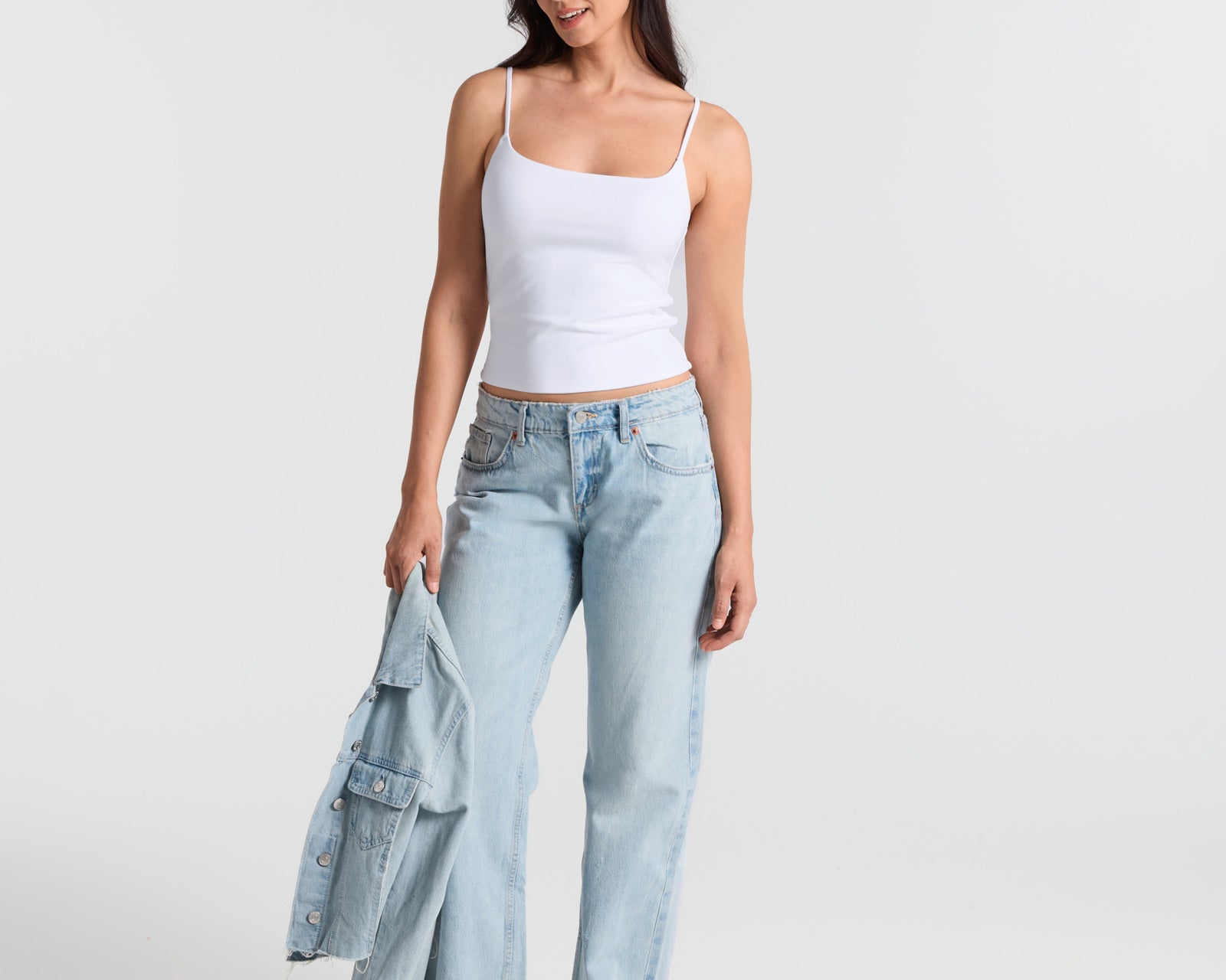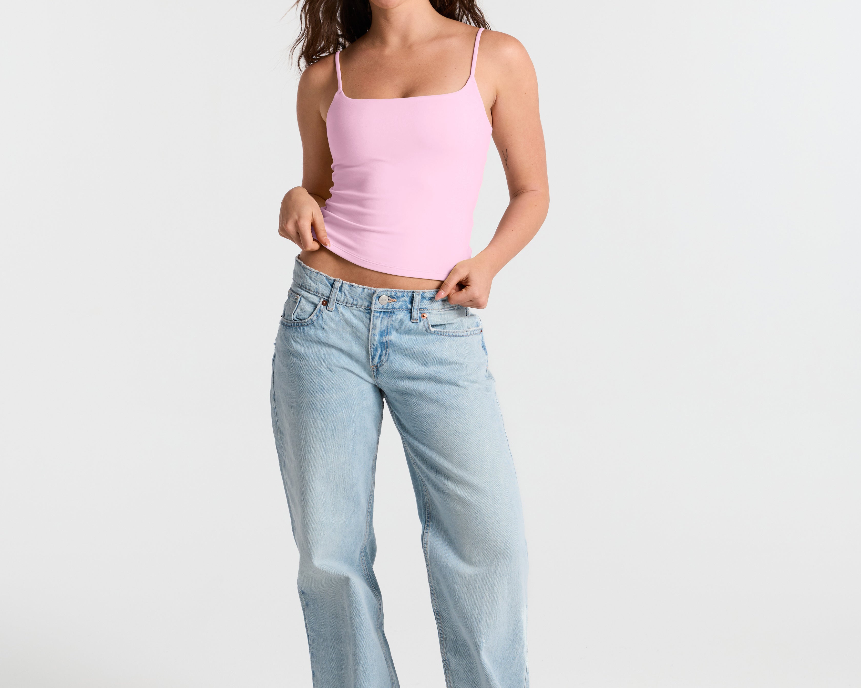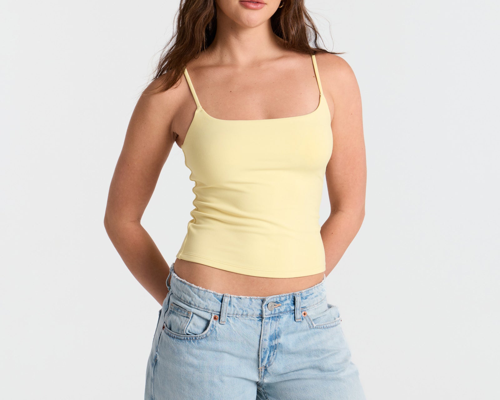 Spaghetti Straps Double Layer Crop Cami